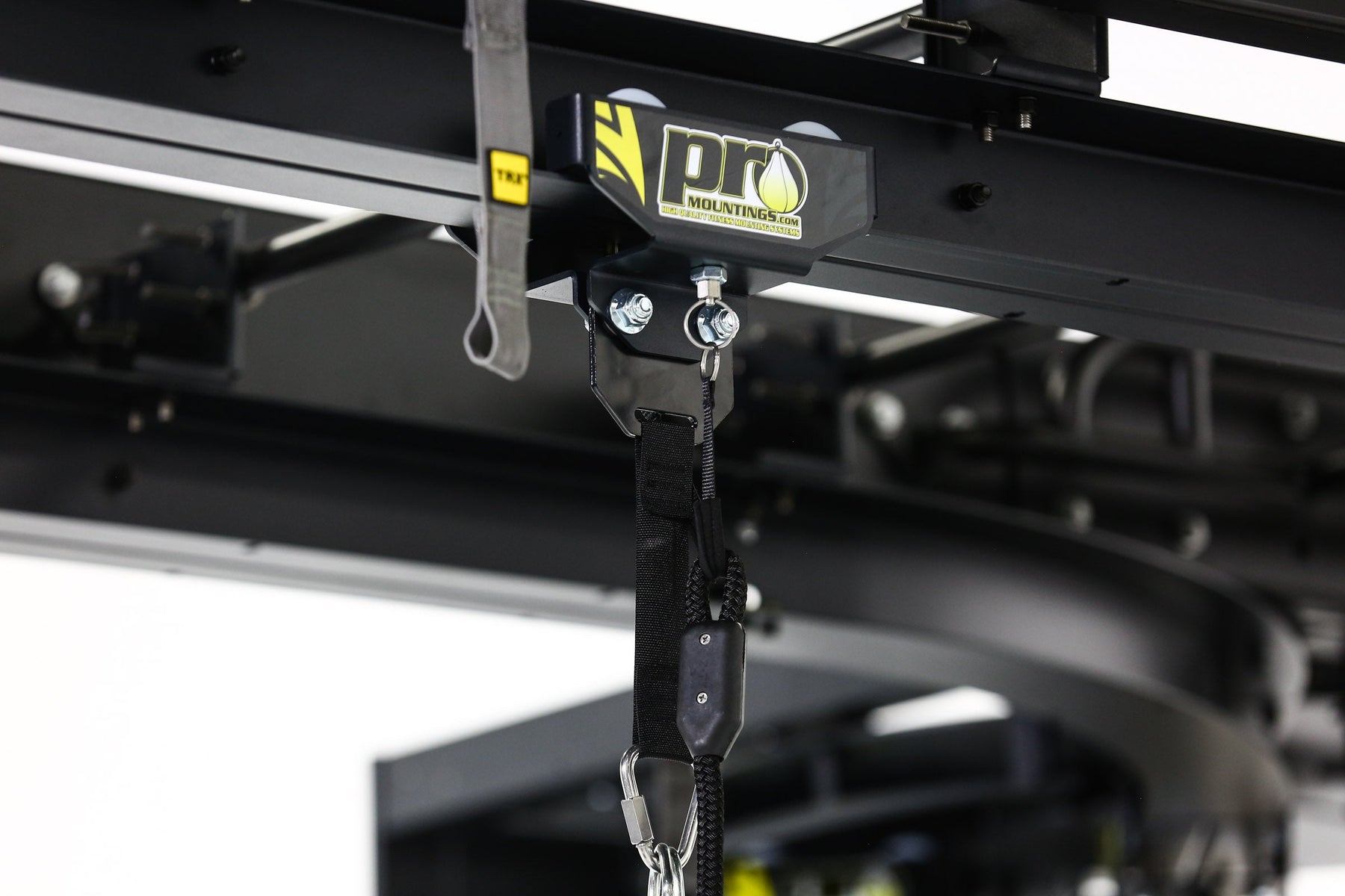 This combo kit is great for people who have high ceilings and are unable to turn the knobs to tighten/loosen on our original IB-110R Roller Mount and Track system. Our Spring Plunger Roller Mount track system for moving heavy bags into usage and away in storage has never gotten easier. Simply Pull the double braided nylon rope and slide the bag out of the way on our track.
